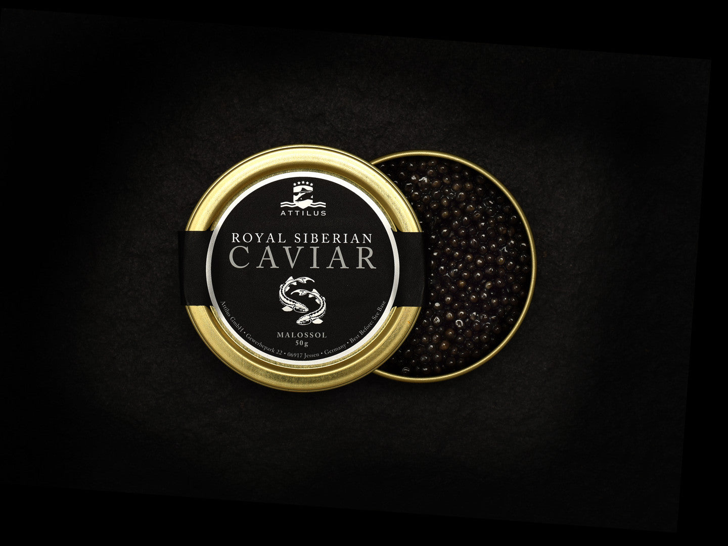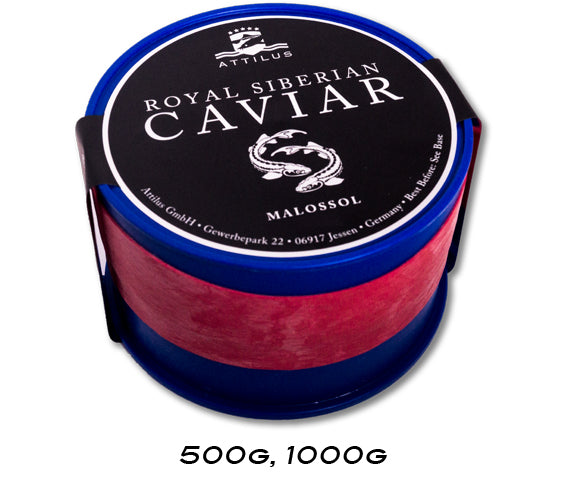 Royal Siberian Caviar, sometimes called baerii caviar, is produced by Siberian sturgeon (acipenser baerii). Siberian is a fine-grained caviar recognised for its pure, elegant flavour and exquisite length which is both fine and clear. Colours range from black/grey all the way to black/brown tones.